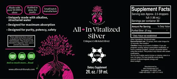our unqiue colloidal silver is made with pure99.99%silver bottled in glass for purity small batch manufactured uniquely made with structed water desigend for maximum absorption non gmo gluten and dairy free.